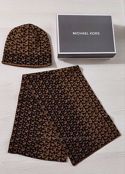 Стильный набор michael kors комплект шапка и шарф с логотипом оригинал
