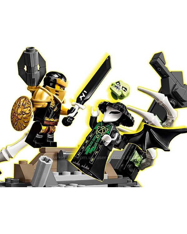 Помогите героям Коулу, Зейну и Ллойду победить чародея-скелета в опасных подземельях! Осторожно! Здесь много ловушек и врагов, например, Мёрт, Гинкл и Воскресший воин. Избегайте встречи с ними, чтобы захватить Теневой клинок избавления и спасти ниндзя, томящихся в подземной тюрьме. Победа зависит только от вас!