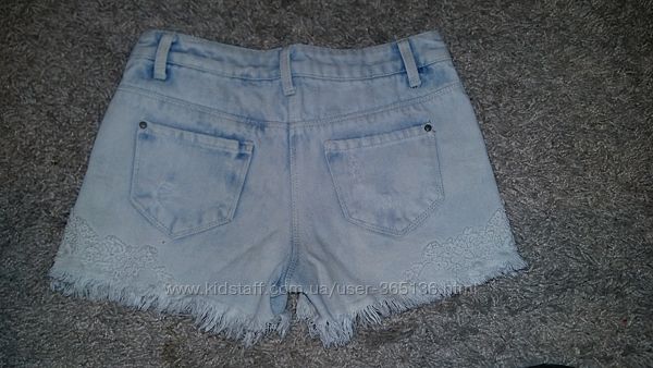 Джинсовые шорты 146-152см.,замеры на фото .Голубой цвет,низ кружево.Другие объявления продавца