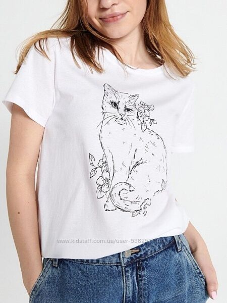 Футболка з принтом котик Польша 400грн фото 1-3розмір S пог 47 дл.58/M пог 52 дл.61/L пог 55 дл.62/XL пог 56 дл.66