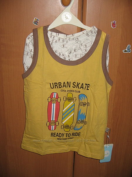 майка с большим принтом скейты и цветные шорты - белые коричневыми скейтами , р.75 идет на 4-5 рост 104-110 см , ориентируйтесь по замерам. цена 180грн