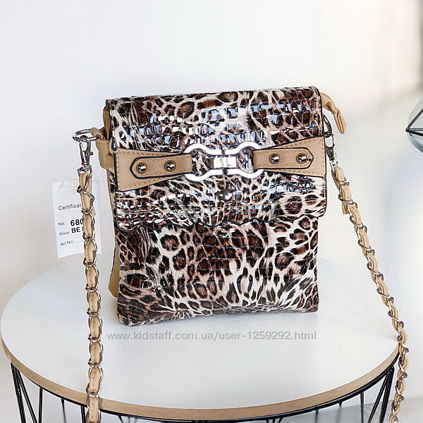 Женская сумочка-кроссбоди на длинной ручке, клатч из искусственной лакированной кожи с принтом под леопарда для повседневного использования.