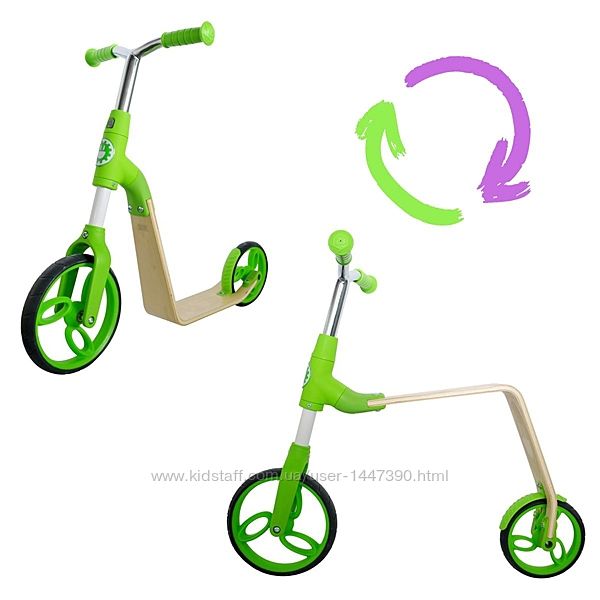 Необычное детское транспортное средство, которое, в зависимости от нужды или предпочтений ребенка, может использоваться как беговел или как самокат. Диаметр переднего колеса - 22 см, заднего - 17 см. Возраст 2-5 лет, рост 95-120 см. Максимальный вес - 35 кг.Бренд: AEST