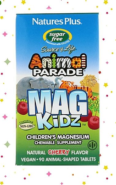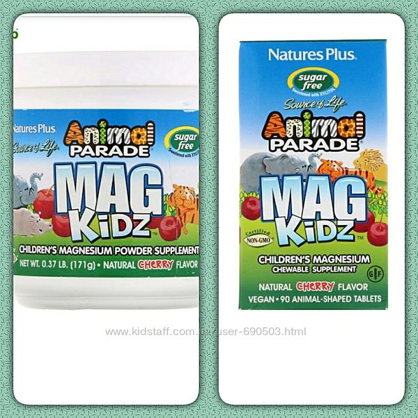 1) Парад зверей" Mag Kidz, магний для детей, вкус натуральной вишни, 0,37 ф (171 г). (Фото 4,5)