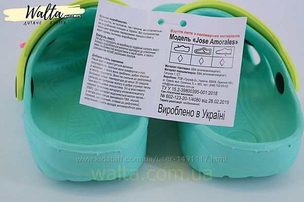 сабо ТМ «Jose Amorales» з екологічно чистого і гіпоалергенного матеріалу ЕВА (етиленвінілацетат).