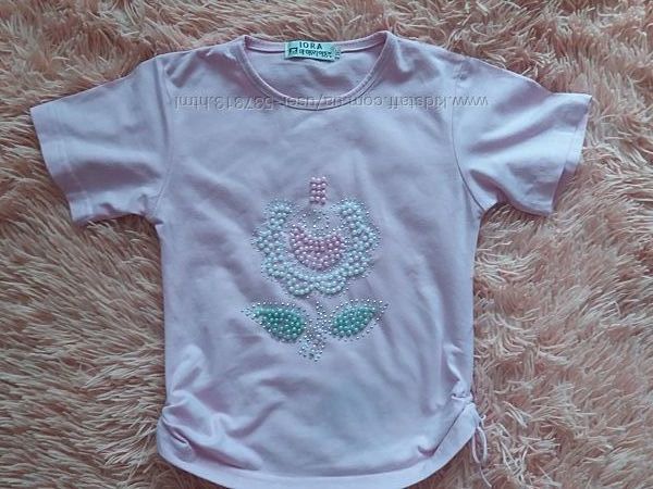Розовая футболочка с вишивкой бусинками. ПОГ -32см, длина 42 см, плечики 29см. Плотный смешанный состав, Китай. Цена 10 грн
