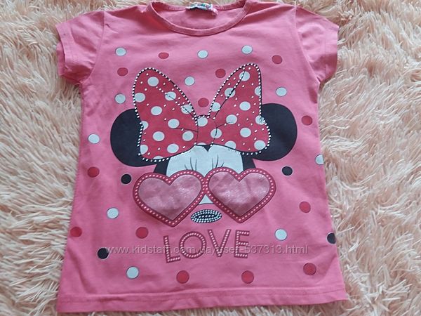 Розовая футболочка с Мини. ПОГ -32см, длина 41см, плечики 27см. Турция.Указан размер 116см/6. Цена 20 грн.