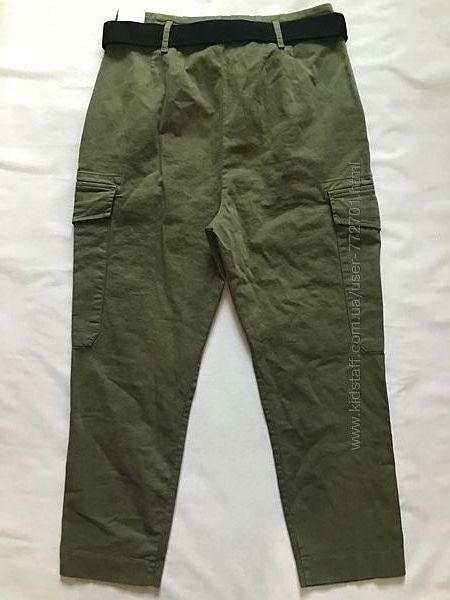 Модные брюки карго с высокой талией Bershka, с поясом, длина 7/8. Отличное качество.Турция.