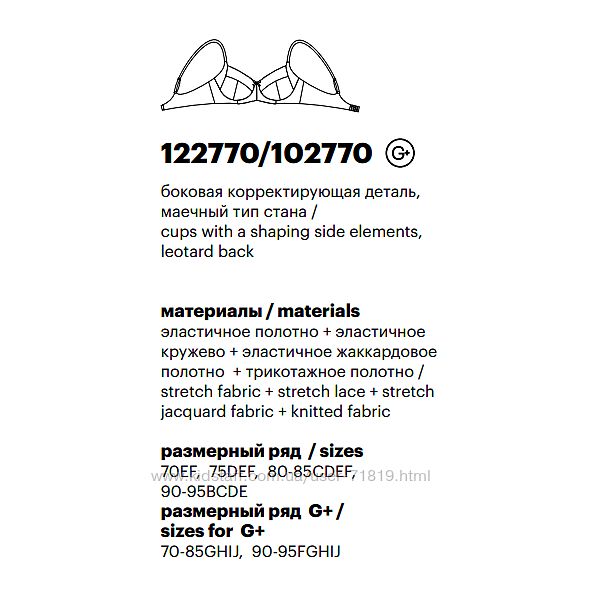 Бюстгальтер из эластичного жаккардового трикотажного полотна, функционального эластичного трикотажного полотна и эластичного кружева, На косточках. Мягкие чашки с тройным членением и боковой корректирующей деталью. Наличие размеров и цветов уточняйте.Состав : 80 % полиамид, 20 % эластан