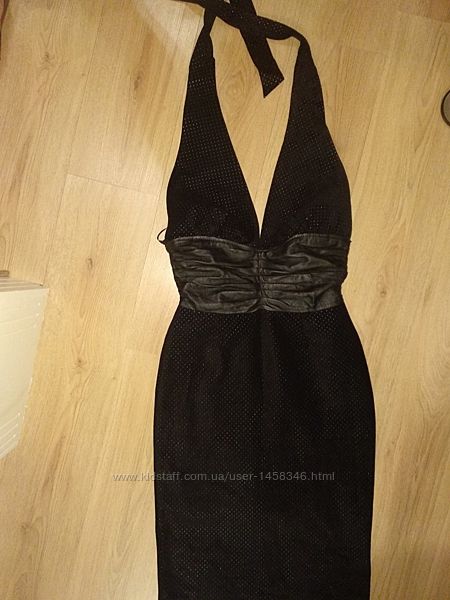 Jacques sac,красивое черное платье-футляр из натуральной мягкой замши ,по линии талии драпировка из тонкой и качественной натуральной кожи,фасон с открытой спиной ,лямки завязываются на шее,платье шикарно смотрится и в комплекте с блузой или топом ,размер 46-48.Состояние нового,без дефектов. Замеры:ПОТ 37см,ПОБ 49 см,длина юбки от талии 65 см,высота кожаной вставки до линии груди 16 см.Состав:100 % натуральный замш ,100% натуральная кожа