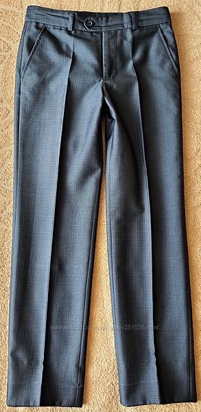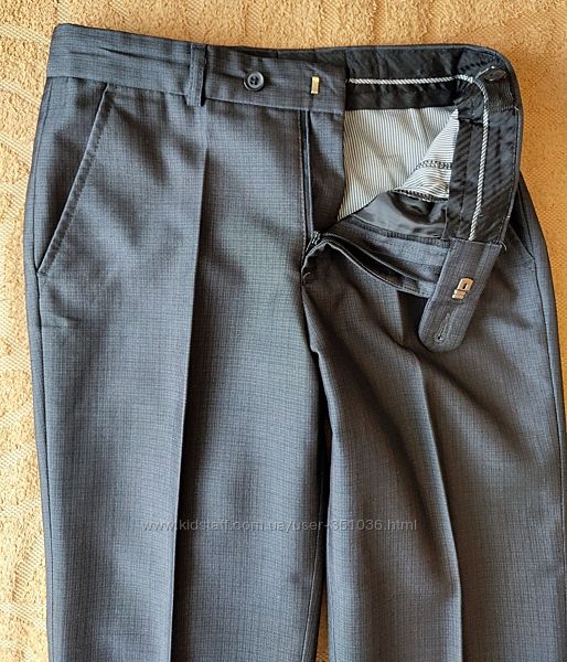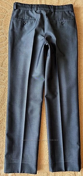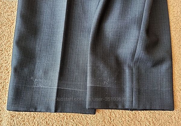 Первоначально брюки были больше подшиты, а потом по мере роста сына длину увеличили, остались видны заломы внизу штанины (видно на фото).
