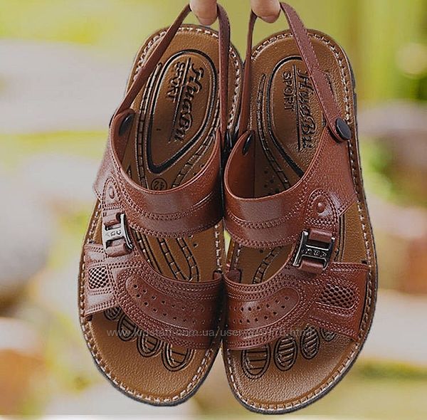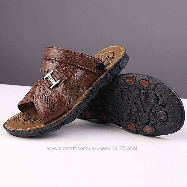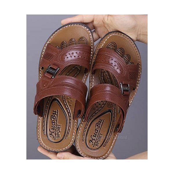 Стильные мужские сандалии. Можно носить как сандалии и как шлепанцы. Размер 44, стелька 27см Материал верха - PU-кожа. Очень мягкая, эластичная. Возврат не предусмотрен, возможен обмен.