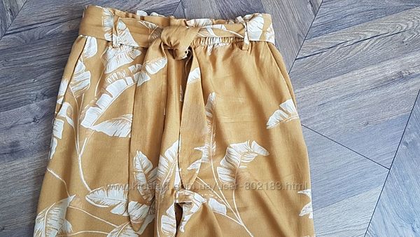 Летние горчичные брюки с поясом H&M размер m-l 9100 вискоза