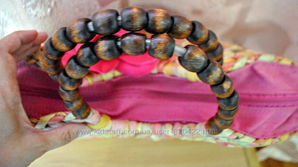 Очень стильная винтажная сумка из натуральной соломы- материал натуральная солома, ручки из деревянный бусин