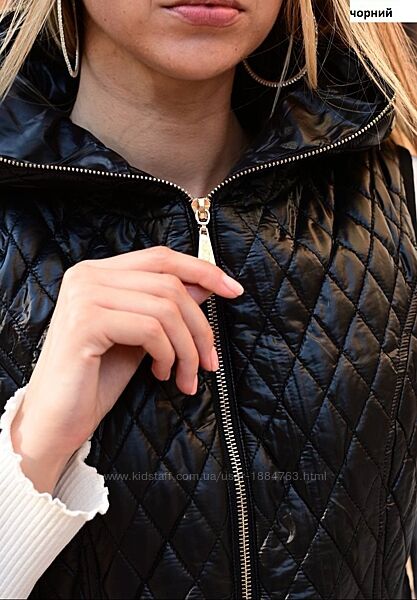 Стильная стеганная жилетка. Удлинённая. Цвет чёрный. Размеры S, M, L, XL, XXL. .При заказе пишите пожалуйста свои параметры, т.к. в каждой ростовке замеры могут отличаться (+ - 2 см)Матеріал: Плащівка