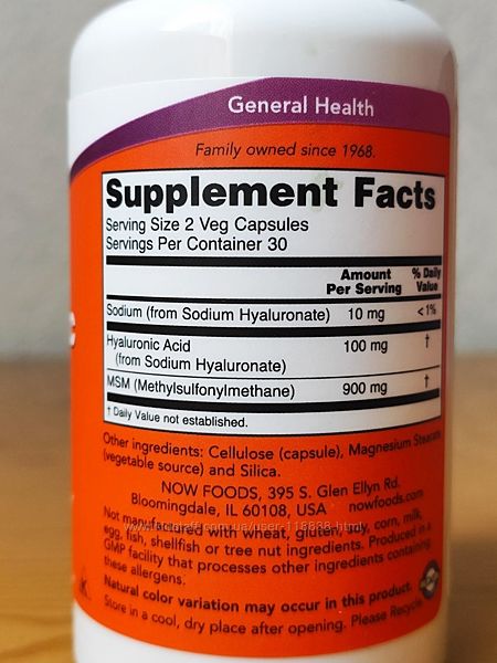 # Now Foods, Гиалуроновая кислота с МСМ, 50 мг, 60 растительных капсулОПИСАНИЕ:
