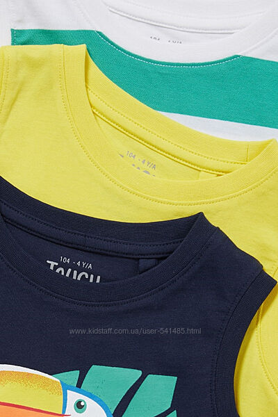 Літні майки з комплекту для хлопчика з дуже м´якого, приємного на дотик бавовняного трикотажу. Продаються поштучно, бірка на одній. З нової колекції дитячого одягу провідного європейського бренду C&A.Розмір у наявності: