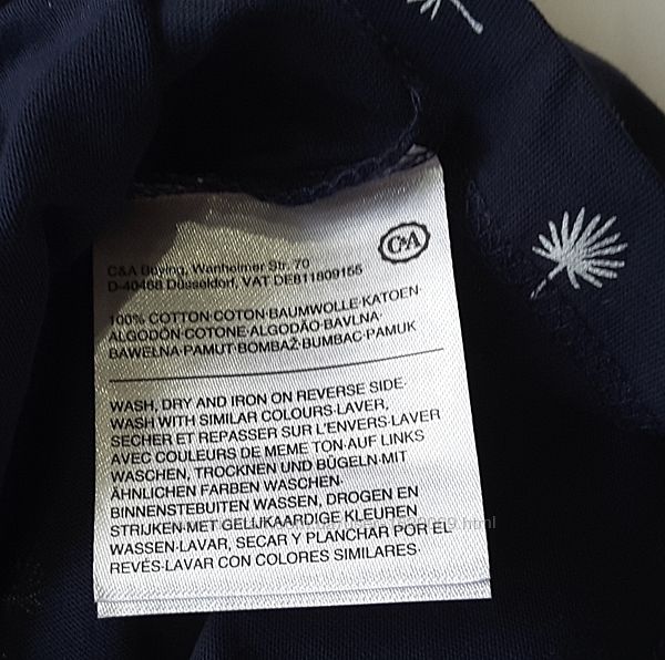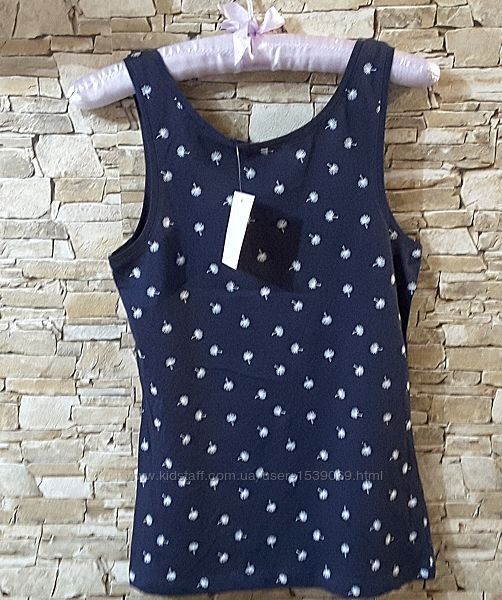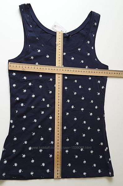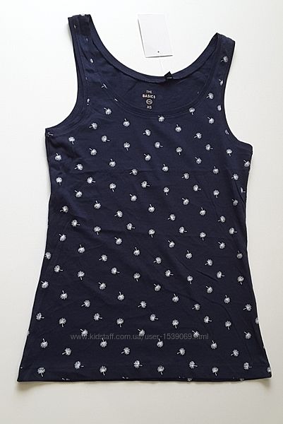 Стильна бавовняна майка темно-синього кольору розмір XS з малюнком кульбаби від нідерландського бренду Basics компанії C&A. Приємна на дотик, тягнеться, але зберігає форму.