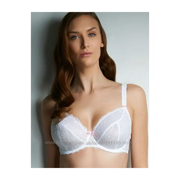 4101 Freya Jolie Lace Balcony Bra Белый. Популярная серия Freya Jolie — смелая, современная и в высшей степени элегантная. Сплошное французское кружево, украшенное двойными бантами, придающими изделию женственный вид. Мягкая чашка на кости разделена на две части, благодаря чему прекрасно поддерживает бюст и создает правильную форму. Спинка из эластичной сеточки. Застежка два крючка на три позиции.
