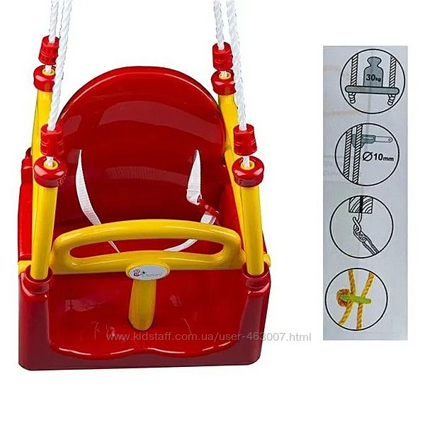 Качели детские пластиковые подвесные 3в1, ТМ DoloniКачественные пластиковые качели от ТМ Doloni будут интересны, как крохотному малышу, так и ребенку постарше. Качели можно подвесить в комнате или на улице, в зависимости от желания и возможностей. Крепятся качели прочными канатами и выдерживают вес до 25кг. Пластик качели качественный и прочный, нет никакого постороннего запаха, товар сертифицирован!