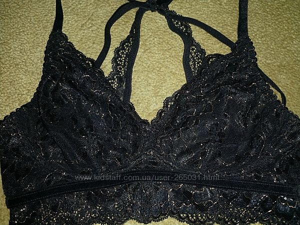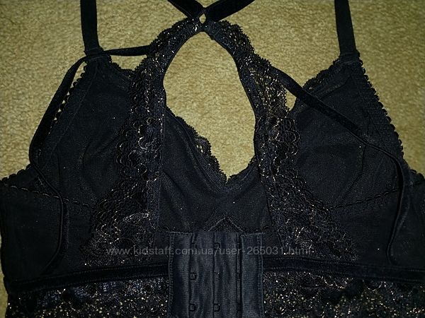 Нереально красивый бралетт Marks&Spenser, черного цвета с золотой вышивкой и бархатными вставками. На спинке выглядит просто фантастически.Размер указан 8, но маломерит.