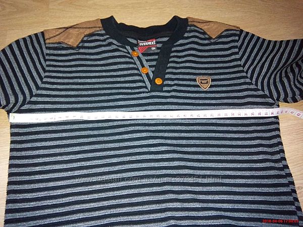 Джемпер в полоску рост 134 см. Оригинальные налокотники и наплечники. Низ и на рукавах манжеты. Б/у, в очень хорошем состоянии, без нюансов.Замеры: