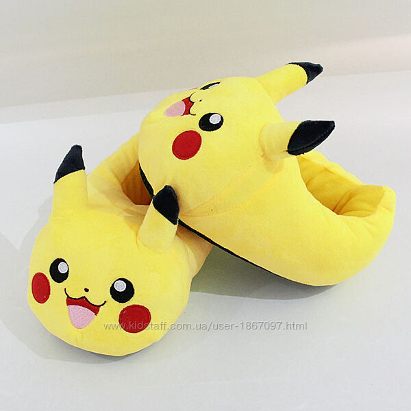Подробное описание: Мягкие тапочки Пикачу р. 25-32 / Плюшевые тапки кигуруми
