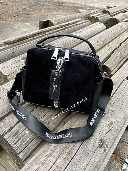 Женская кожаная замшевая сумка. Клатч кожаный. Кроссбоди. Polina&Eiterou.