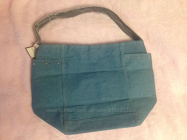 Сумка Victoria´s Secret. Матеріал джинс, підкладка. На кнопці. Два зовнішні бокові глибокі кармани.Заміри зроблені в складеному вигляді: