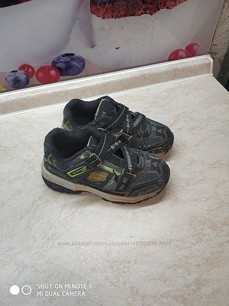 Фирменные кроссовки подойдут для двора, дачи. Из дефектов - утерян внешний вид, но ещё очень крепкий. Цена за пару.Skechers с мигалками, р.25, стелька от края до края 16,5 см;