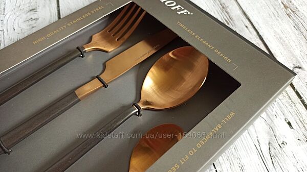 РЕАЛЬНЫЕ ФОТО ПРИЛАГАЮ!Набор столовых приборов серии Gem выполнен из нержавеющей стали 18/10 с покрытием из особого сплава - Titanium PVD. Инновационное покрытие не только предохраняет изделия от коррозии и механических повреждений, но придает им стильный современный вид. Столовые приборы прекрасно подойдут как для ежедневного использования, так и для изысканной сервировки праздничного стола. Набор упакован в подарочную коробку, поэтому станет прекрасным презентом на свадебное торжество или новоселье.