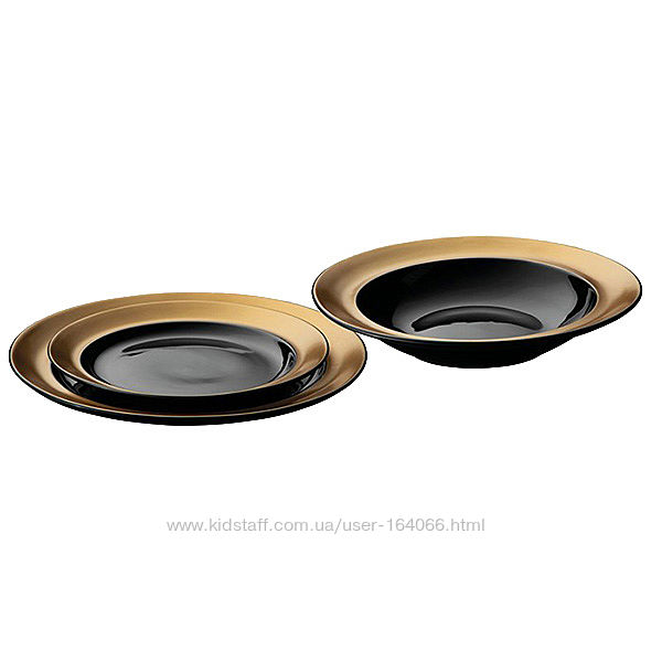 Набор тарелок Berghoff Gem черный с медным 1698002. В наборе 3 тарелки диаметрами 20, 24,5 и 26,5 см. Изготовлены из качественного фарфора.Для изготовления новой серии столовой посуды компания BergHOFF Gem использованы материалы высочайшего качества. Легкий, почти невесомый фарфор в сочетании с "золотом" создает впечатление роскоши и изысканности.