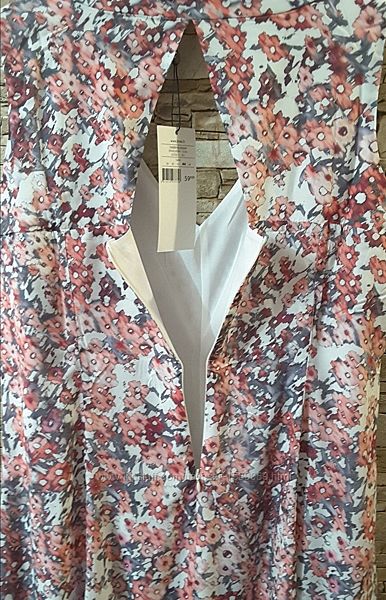 Принт – цвітіння вишні на білому тлі, сукня – восьмиклинка, спереду V-подібний виріз, ззаду на спині – пікантний виріз, невідрізне по талії, ззаду – блискавка застібка.