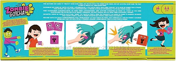 Зомби Готча – это жуткая и очень крутая детская игра. Цель игры – убежать из дома, полного ужасных зомби. Для побега вам придется открыть все запертые двери, но остерегайтесь отвратительных зомби! Каждый игрок начинает с трех карточек-“замков”, которые необходимо “открыть”, собрав 2 карточки-"ключа" одного цвета. Для этого вы можете взять любую карту из общей стопки или попытаться осторожно вытащить 2 карты прямо из цепких лап зомби! Если зомби схватит вас, то дверь останется заперта и вам придется взять еще одну карту-“замок”. Первый игрок, который откроет все свои двери и вырвется из логова зомби,станет победителем. Эта увлекательная настольная игра соберет вокруг себя всю семью и доставит массу удовольствия и положительных эмоций!