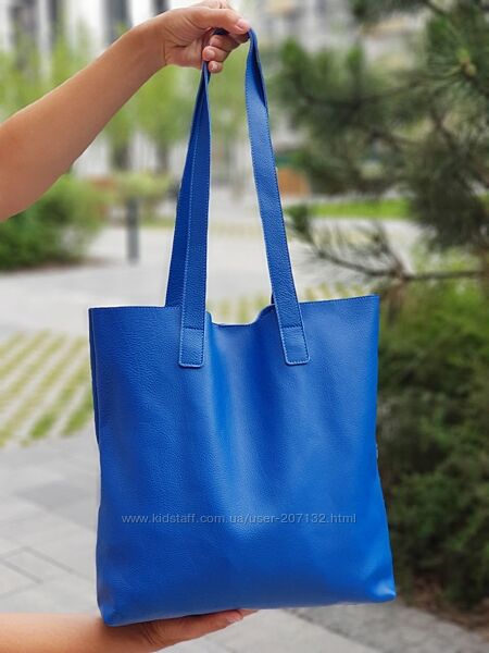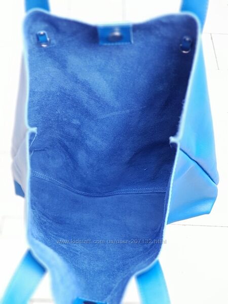 Подробное описание: Шкіряний синій шопер на кнопці
