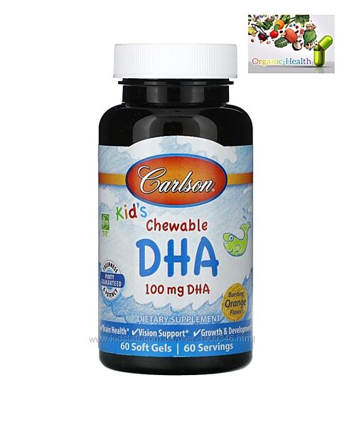 Омега 3 для детей, Carlson Labs, Жевательная ДГК для детей, с вкусом апельсина, 100 мг,60 капсул- стоимость 400 грн