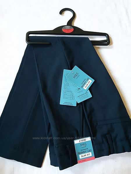 Skinny Leg Slim Fit Trousers, Marks&Spencer (Англия),в наличии черные и синие) Эти брюки выполнены на основе высококачественных материалов, идеально подходят для всего учебного года. Идеально сочетаются с рубашками и пиджаками. Технология Permanent Pleat обеспечивает легкую стирку и глажку. Грязеотталкивающая технология Stain Resistant препятствует образованию пятен, а также способствует удалению загрязнений во время стирки. Технология Supercrease уменьшает образование заломов и складок. Специальная пропитка защищает от масла и пятен на водной основе. Регулируемый подол позволяет легко изменять длину в случае роста ребенка.Рост стандарт.