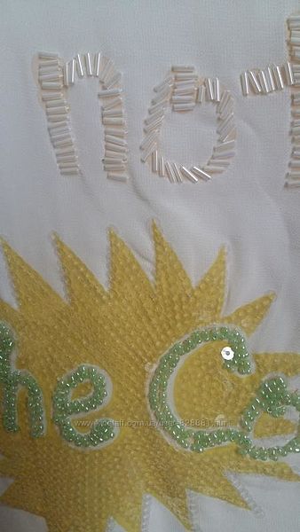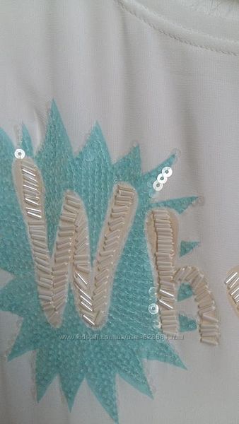 Суперовая нарядная футболка/туника цвета айвори, расшита бусами и пайетками. Смотрится шикарно!Двухслойная: верхний слой - легкий, воздушный, очень напоминает шифон; нижний - легкий хлопковый трикотаж.