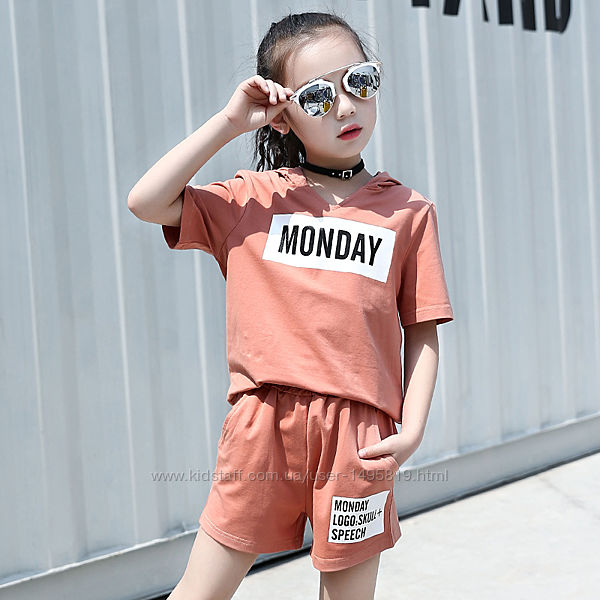 Комплект для девочек производства фабричный Китай. . Комплект: футболка с капюшоном + шорты. Отличный вариант для летней прогулки. Состав: 90% Cotton,10% ElastaneРазмерный ряд: 150 (в наличии бутылочный)
