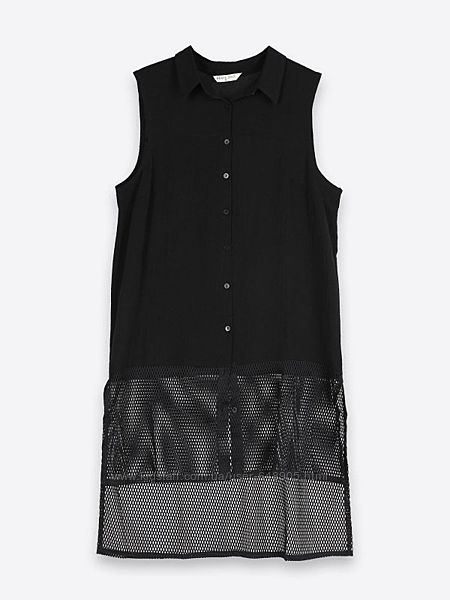 Подробное описание: Длинная чёрная рубашка с сеточкой Top Secret
