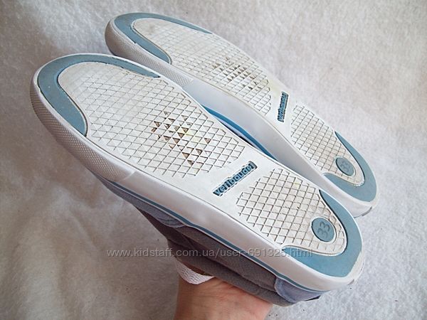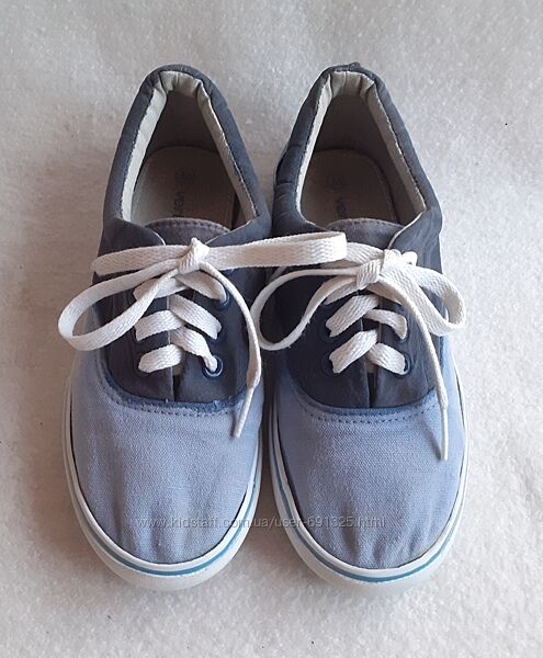 Предлагаю текстильные кеды. Подошва резиновая, внутри стелька из натуральной кожи. Б/у на физру, постираны, состояние очень хорошее, смотрите фото. Единственный нюанс - после мытья села кожаная стелька, уменьшившись на сантиметр.Размер указан 33, длина стельки внутри 21 см, длина вкладной стельки 20 см.