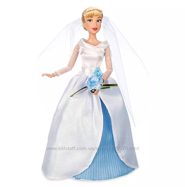 Набор из двух классических кукол Disney - Золушки и Прекрасного Принца Чарминг.Куклы одеты в роскошные свадебные костюмы. На Золушке атласное свадебное платье с блестящей юбкой, воротником-хомутом, рукавами из прозрачной сетки, прозрачной рифленой нижней юбкой и тканевой розой на талии. Цветочный букет на запястье с атласной лентой. Полупрозрачные "хрустальные" туфельки. Аккуратно уложенные волосы. Сетчатая вуаль