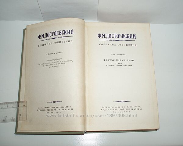 Собрание сочинений в десяти томах. Том 9 Братья Карамазовы (части 1-3), в твёрдом переплёте, 1958 года издания, Москва : Гослитиздат.Стоит цена 6 руб 50 коп.