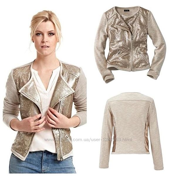Оригінальний піджак з паєтками від фірми Tchibo (Німеччина) допоможе вам бути одночасно яскравою, ніжною та жіночною. Він підкреслить ваш смак і привертатиме увагу оточуючих. При цьому його можна носити і як щоденне вбрання і на більш святкові випадки.