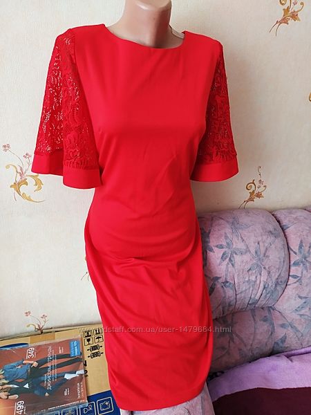 Распродажа!!!Цены снижены! Смотрите др.лоты!! Шикарные платья, р. С и М. Ткань трикотаж не теплый, средней плотности + рукав - гипюр с красивым узором. Качество прекрасное, платья садятся по фигуре, выглядят очень элегантно и женственно. р. С - электрик (ярко-синее) - ПРОДАНО , р. М - ярко-красное в наличии!!р. С - продано !!