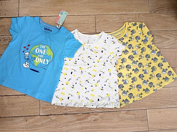 Комплект 3 шт футболок на девочку Lupilu Германия размер 86-92, 98-104, 110-116Набор очень красивых футболок для девочки из 3шт. торговой марки Lupilu (Германия).
