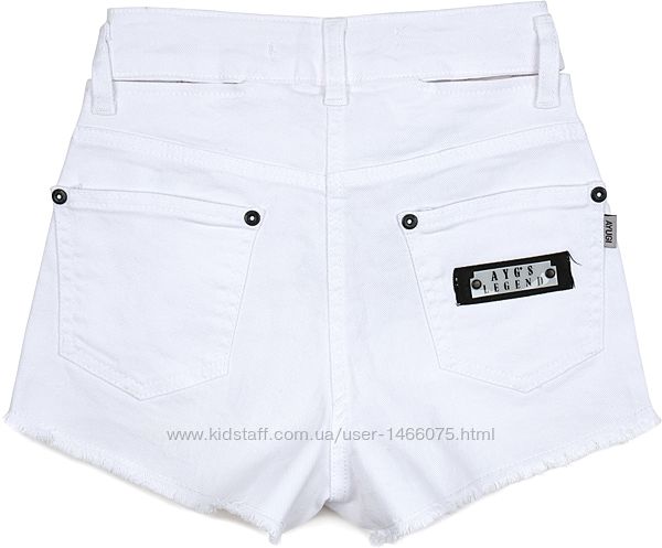 Фото 1, 2 , 3.Стрейчевые белые шорты с высокой посадкой для девочки.