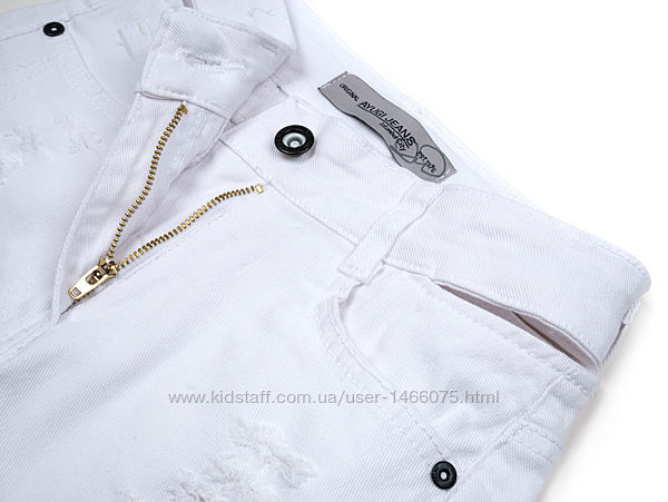 Предлагаем Вашей моднице стильную пятикарманную модель белого цвета, из эластичного стрейчевого хлопка, с удобной высокой посадкой , модными рваными «дырками» и эффектным поясом.