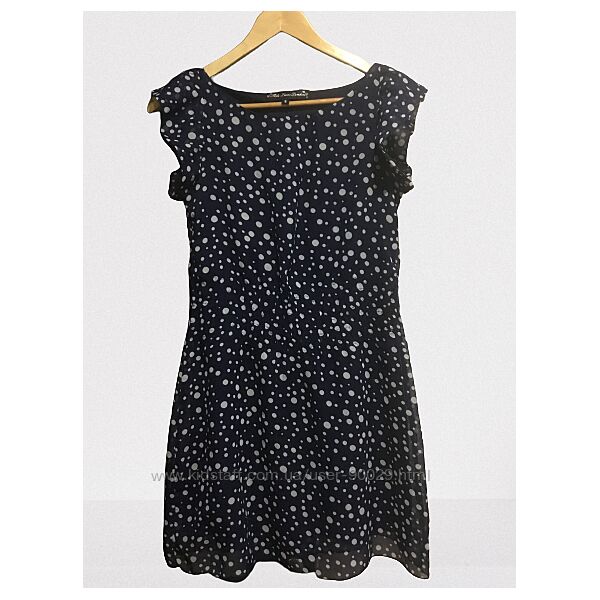 Фото 4-5 платье синего цвета в горошек, ткань шифон
