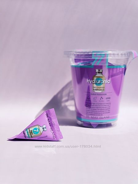 Высококонцентрированная сыворотка May Island 7 Days Highly ConcentratedHyaluronic Ampoule содержит 5000 ppmгиалуроновойкислоты. Сыворотка поможет устранить проблемы сухости и раздражения кожи, атакже отлично смягчает и питает кожу, является средством для обновления кожи,улучшая ее микрорельеф и наполняя кожу здоровым сиянием.Действиесыворотки: